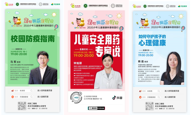 公开课邀请到中国科学院心理研究所发展与教育心理学博士、助理研究员韩茹,北京大学儿童青少年卫生研究所所长马军,首都保健营养美食学会会长、ISF健康学院院长王旭峰,首都儿科研究所附属儿童医院药学部副主任钟旭丽,ISF特聘高级营养讲师、首都保健营养美食学会任副秘书长李润庭分别就儿童心理健康、校园防疫、儿童营养健康、儿童用药健康以及儿童肠胃健康话题进行直播授课。公开课在阿里健康、抖音、一直播、淘宝直播平台进行直播,在线实时观看直播人数达40多万,通过未来网活动专区、官方微博等观看专题短视频流量达到200多万人次。